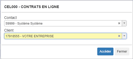Choisissez la fiche client de VOTRE ENTREPRISE et appuyez sur Accéder. Poursuivez les étapes à l’écran.
