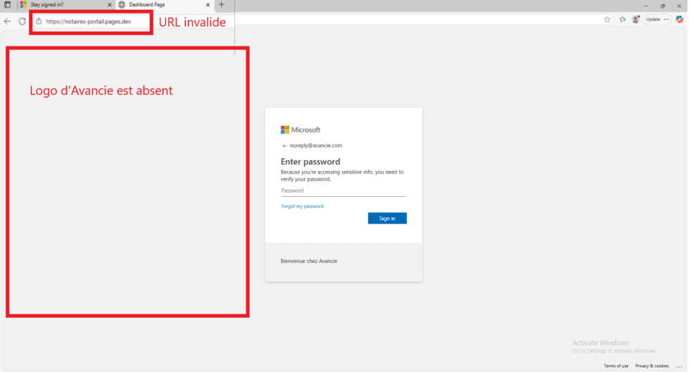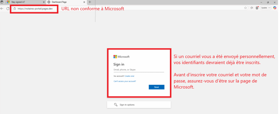 Un faux lien peut ressembler à ceci: ❌ https://notaires-portail.pages.dev